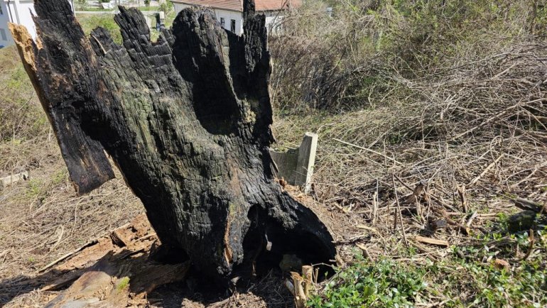 - Hvala dobrim ljudima što nam pomažu. Ovoga puta nisam tražio dozvolu tzv. lokalnih vlasti, jer nam prilikom ranijih pokušaja nisu dozvolili, zapravo rečeno nam je da tu postoji minsko polje jer su u više navrata Albanci minirali crkvu od koje su sada vidljivi samo ostaci zvonika. Osim što je tokom 1999. minirana dva puta, crkva je i ranije bila na meti napada, dok je bor koji je po predanju 1336. godine svojom rukom zasadio car Dušan Silni posečen i zapaljen. Taj bor - munika je, inače, 1995. godine zakonom zaštićen kao spomenik, ali od njega je sada ostao samo panj. Ipak, daće Bog i Sveti Nemanjići, sada kada smo krenuli u raščišćavanje groblja i crkvene porte, da zasadimo novi bor koji će rasti kraj onog Dušanovog - ističe otac Trajko.