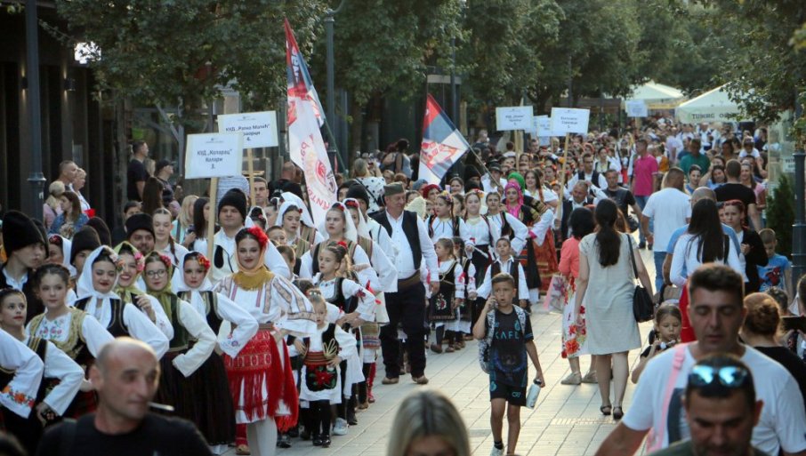 Članovi 22 kulturno-umetnička društva (KUD), od 24 koliko ih je u gradu, prošli su kroz pešačku zonu, Ulicu kralja Petra Prvog, a najveće oduševljene izazvali su najmlađi u narodnim nošnjama. Reka igrača, od najmlađih koji su imali jedva četiri, pet i šest godina, pa do najstarijih - veterana, ulivala se na gradski trg skoro pola sata. Tokom defilea predstavljen je svaki KUD, nabrojani uspesi i nagrade koje je osvajao.