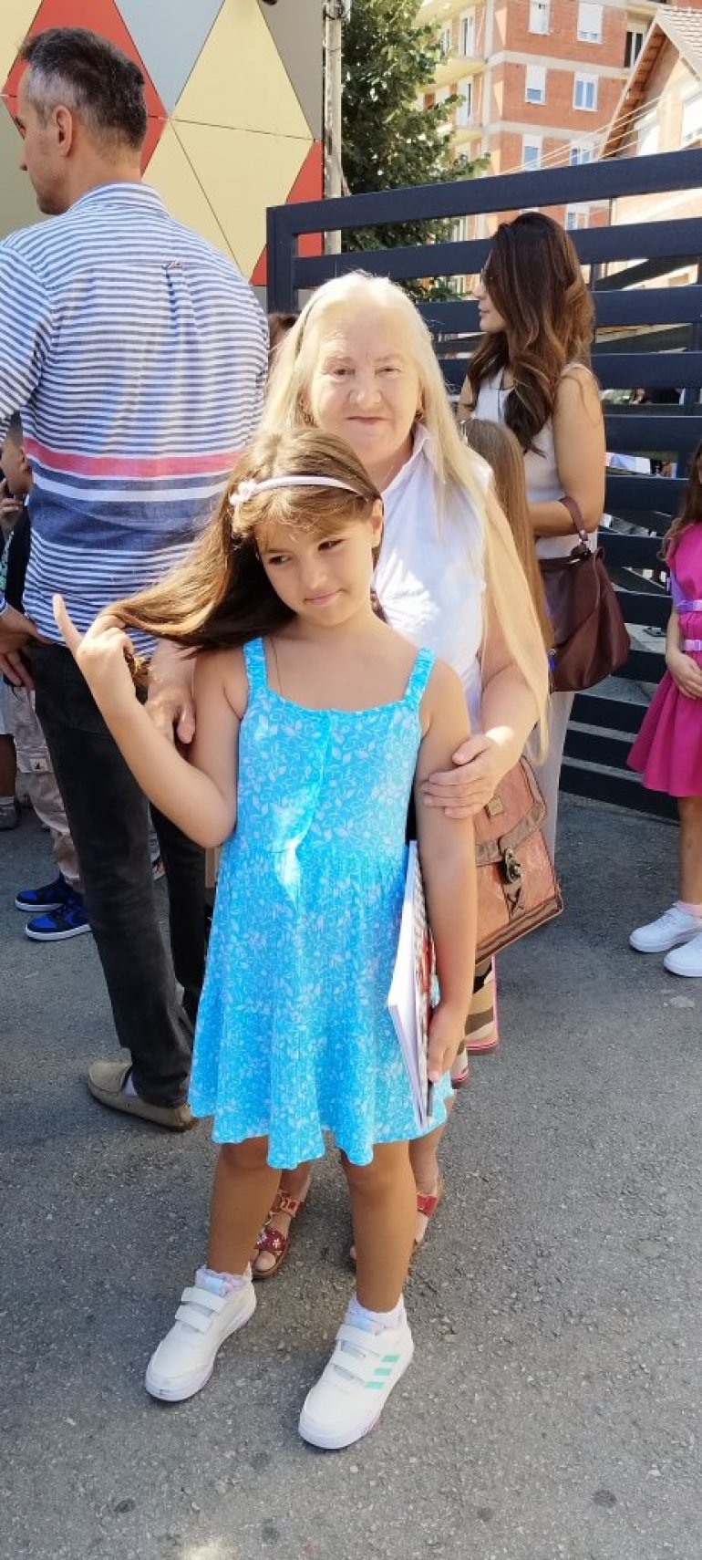 MALENA Alejna je odlučno odabrala haljinicu plave boje. Ona joj se najviše dopada za prvi dan u školi. Vidno su uzbuđene i ona i njena mama Atifa Ljajić koja se, takođe, potrudila da izgleda što lepše na svečanom prijemu prvaka, vršnjaka njene jedinice i mezimice. Biće tu mnogo roditelja, želi da izgleda lepo zbog Alejne. U dvorištvu OŠ "Bratstvo" u Novom Pazaru sačekala ih je gužva, a potom su prvačići sa roditeljima ušli zajedno u školu. Posle ceremonije Atifa je izašla i stoji ispred, čeka ćerku da se zajedno posle časova vrate kući.