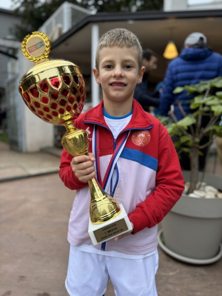 Ovakvu "matematiku" nam je predočio sedmogodišnji Dušan Vukosavljević, iz Zvečana, zvanično najbolji teniser Srbije u kategoriji od šest do osam godina. Ovaj mališan, koji je nedavno osvojio pobednički pehar na teniskom turniru u Beogradu, jedan u nizu u dosadašnjim takmičenjima, uveren je u svoju "računicu", dok njegovi roditelji, majka Biljana (37) i otac Saša (38), koji pored Dušana imaju i četvorogodišnjeg Tadiju, veruju u sinovu upornost, veru u uspeh.