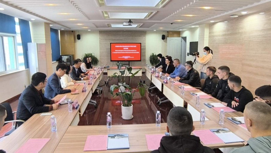 U DELEGACIJI Tehničke škole bili su direktor Slađan Đorđević, profesor Mlađan Mladenović, profesionalni prevodilac kineskog jezika dr Anka Lazarević i desetoro učenika škole sa smera tehničar za industrijsku robotiku.