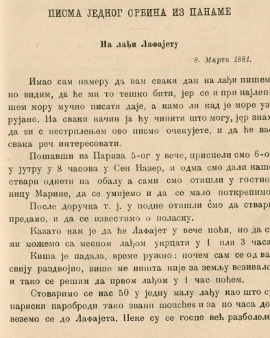 - Iz pisama objavljenih pod naslovom "Pisma jednog Srbina iz Paname", zaključujemo da je V. M. najverovatnije poreklom iz Vojvodine, ali saznajemo i detalje o francuskoj kompaniji koja je gradila Panamski kanal, zaposlenima i načinu na koji se radilo - ističe Sofronijević.