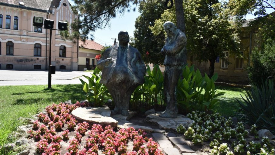 SPOMENIK MRŠAVOM I DEBELOM: Večno sećanje na pesnika i slikara krasi park u centru Kanjiže ( Foto)