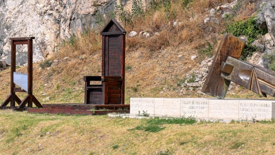 NA ulasku u Knin namernike dočekuje tabla sa natpisom "Dobro došli u grad hrvatskih kraljeva", samo ne piše kojih... Uz put na fasadama ponekih objekata i na podzidama puteva ima ispisanih latiničnih slova "u", a na Kninskoj tvrđavi pre nekoliko godina nikao je spomenik, po svemu bizaran. Čine ga sprava za odsecanje glava (nalik giljotini), stolica koja liči na tron i veliki malj na postamentu na kojem piše: "Svim žrtvama za hrvatsku državu" i to latinicom, glagoljicom i na latinskom jeziku.