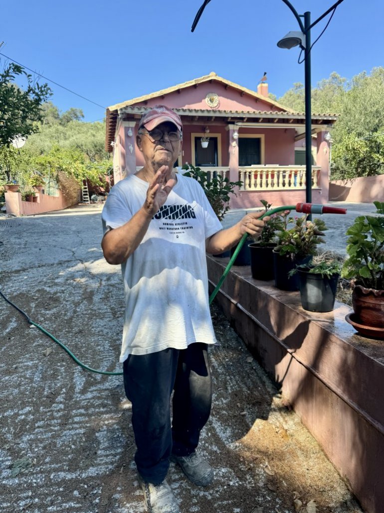 - Dolazi mnogo Srba – kaže komšija Andonikos. Toliko smo mogli da se sporazumemo. Ali, oči mu zasijaju kad pomenemo odakle smo. Stiska čvrsto ruku u znak pozdrava i nastavlja da zaliva baštu dok zrikavci po vrelini pevaju glasnu uspavanku palim redovima drinske divizije.