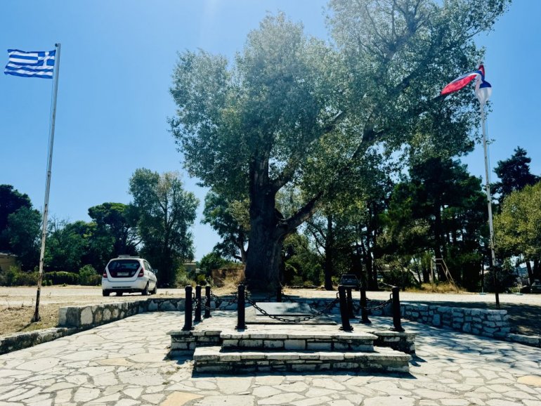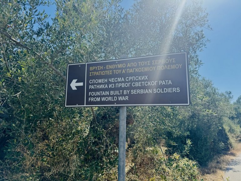 Nekoliko kilometara dalje je i srpska spomen-česma. Trenutno se obnavlja. Dok smo je obilazili, začuo se iz daljine petao, valjda da razbije raspevanu monotoniju cvrvčaka i podseti na rodni kraj. Na Krfu su svi Srbi kod svoje kuće.