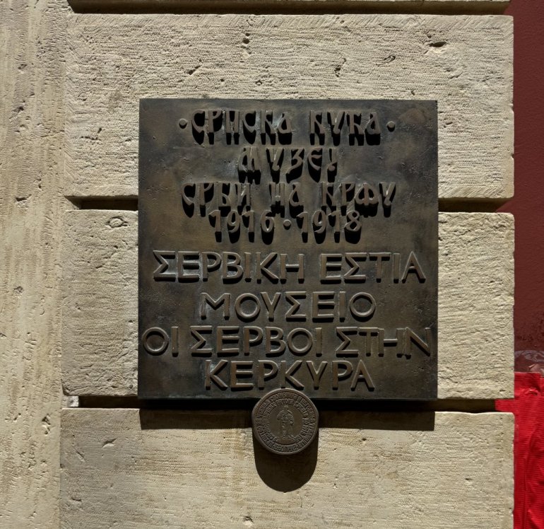 Nedaleko odatle nalazi se i novoizgrađena zgrada gradskog pozorišta, na mestu nekadašnjeg porušenog zdanja, u kojoj su zasedali poslanici Narodne skupštine Srbije, na šta, unutra, podseća i spomen-ploča koju je izradio vajar Ljubiša Mančić. Do kraja Prvog svetskog rata na Krfu je funkcionisala srpska država, tu su bili članovi Vlade, poslanici, sve do najnižih činovnika. Ovde su formirane osnovana škola i gimnazija, štampane su novine i knjige.