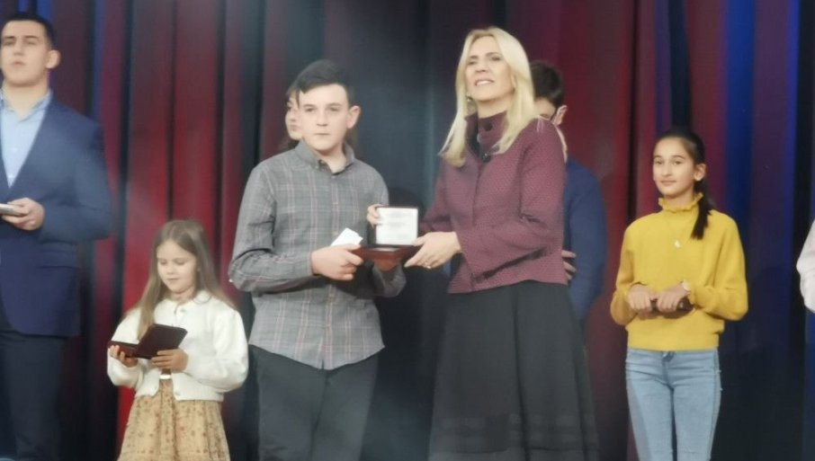UČENIK Osnovne škole "Srbija" sa Pala, Aleksa Ćirić odlikovan je povodom Dana Republike Srpske Plaketom "Palata Republike". Aleksa za "Novosti" kaže da mu je bila velika čast da recituje stihove pesme Matije Bećkovića pred visokim zvanicama, ali i da primi Plaketu "Palata Republike" od predsednika Republike Srpske.