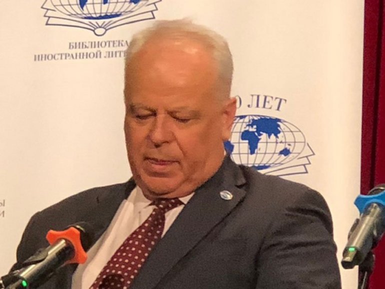 U velikoj dvorani te ugledne kulturne ustanove goste je pozdravio direktor biblioteke Pavel Leonidovič Kuzmin, koji je zahvalio što se i u ovim teškim političkim prilikama održavaju kulturne veze bliskih naroda.