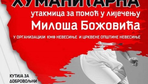 U ORGANIZACIJI KMF "Nevesinje" i Crkvene opštine Nevesinje u četvrtak, 16. marta, u Sportskoj dvorani "Nevesinjka" biće odigrana humanitarna utakmica za pomoć u lečenju Miloša Božovića iz Istočnog Sarajeva.