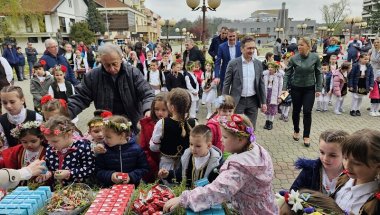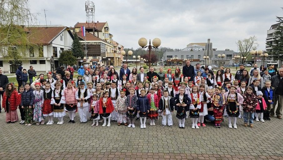 TRADICIONALNOM prolećnom igrom, najmlađi članovi Kulturno-umetničkog društva (KUD) "Rudar" ispred zgrade lokalne vlasti obeležili su Lazarevu subotu-Vrbicu.
