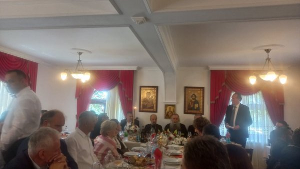 Akademik Drago Mirković ističe da je velika čast za njegovu porodicu što kumuje toj divnoj svetinji, podsećajući na veliku blagodet za naš rod, jer smo "jedini narod na svetu koji ima krsnu slavu i slavi svoje svece, uz molitve da se, kako kaže sveti vladika Nikolaj, složimo, umnožimo i obožimo".