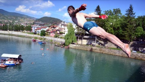 Takmičari iz BiH, Srbije i Crne Gore skakali su u reku Drinu sa mosta Mehmed-paše Sokolovića.
