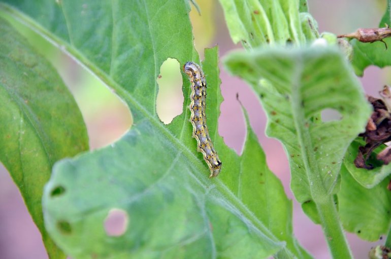 Na parcelama sa duvanom, primetno je puno stabljika bez lišća,te oštećenih i suvih listova, koje su uništile gusenice.