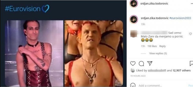 SRĐAN Žika Todorović, naš proslavljeni glumac, je na urnebesan način prokomentarisao ovogodišnje pobednije Evrovizije, italijansku grupu Maneskin, i način na koji se oblači njihov pevač Damiano David.