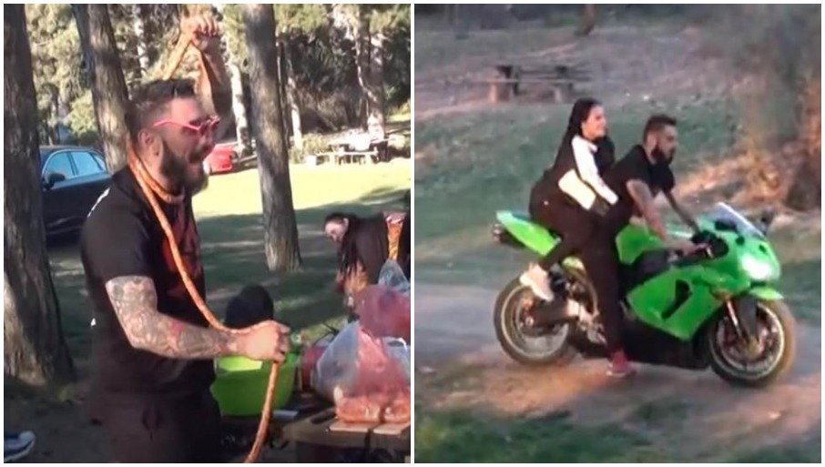 KOBASICE OKO VRATA, PA VOŽNJA MOTOROM: Darko Lazić i njegova verenica Barbara roštiljali na Avali (VIDEO)