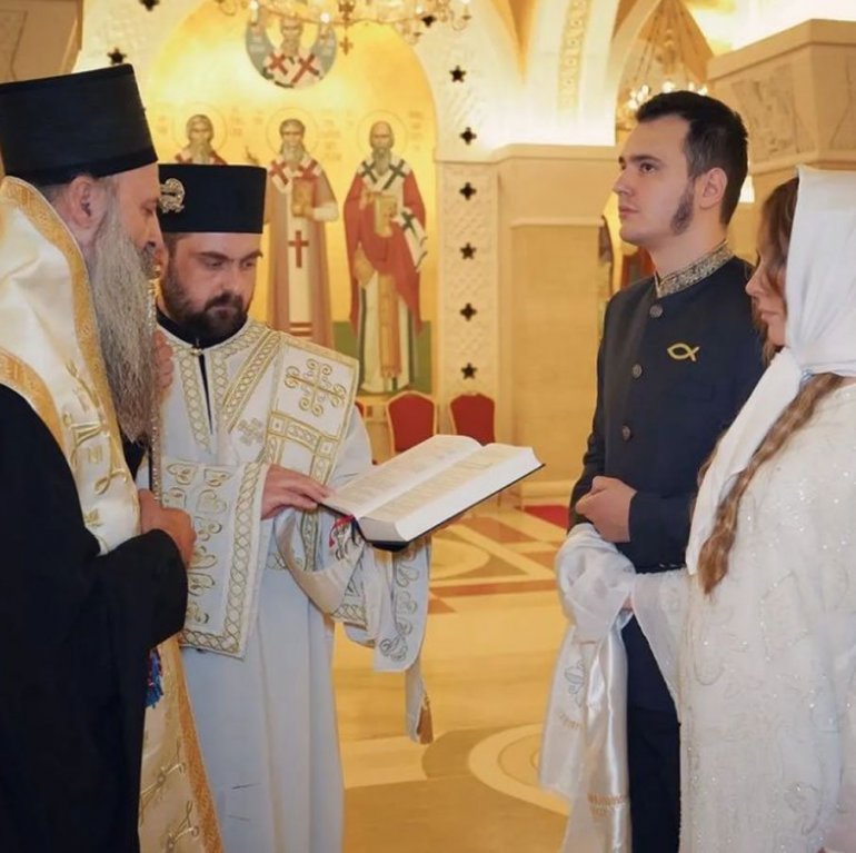 PATRIJARH PORFIRIJE VENČAO MLADENCE: Aleksa Balašević stao na ludi kamen sa Nikolinom u Hramu Svetog Save