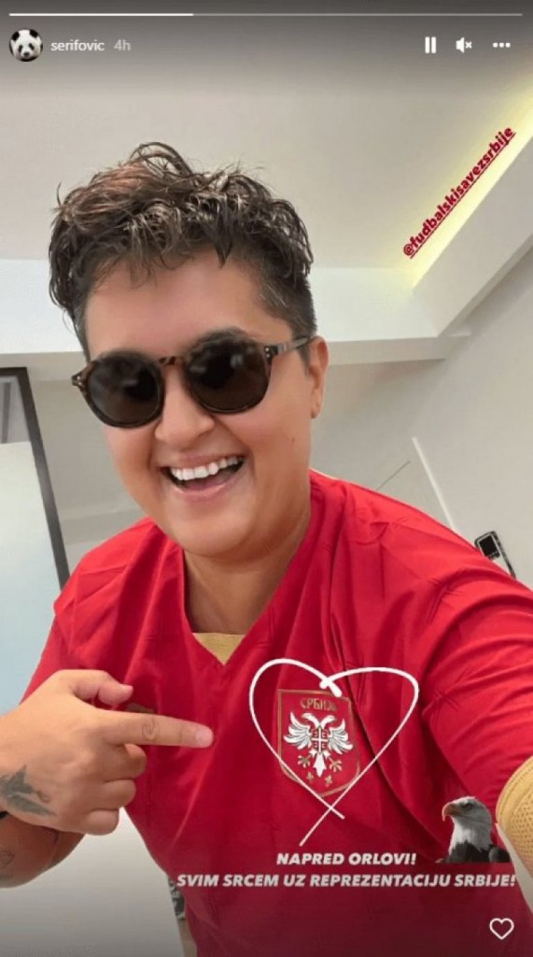 - Napred "Orlovi"! Svim srcem uz reprezentaciju Srbije - napisala je Šerifovićeva u opisu fotografije koju je objavila na Instagram storiju.