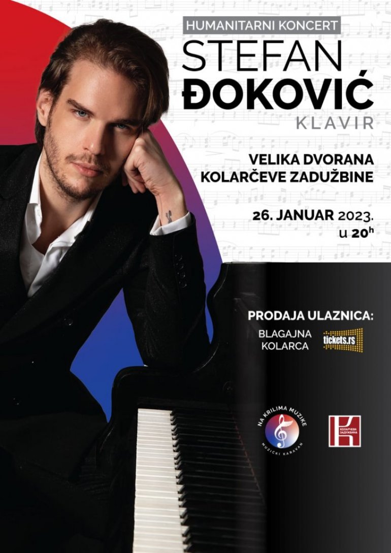 Početak projekta "Na krilima muzike" zakazan je za 26.1.2023. godine u 20 časova, kada će u Zadužbini Ilije M. Kolarca, Stefan Ðoković izvesti dela Franca Šuberta, Frederika Šopena i Franca Lista.