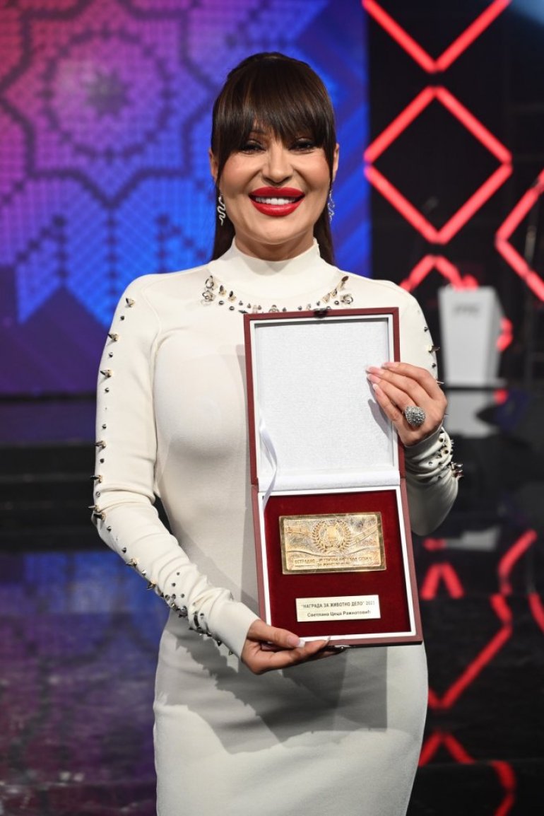 FOLK zvezdi Svetlani Ceci Ražnatović nedavno je uručena nagrada za životno delo na velikom finalu 5. Sabora narodne muzike Srbije 2023.