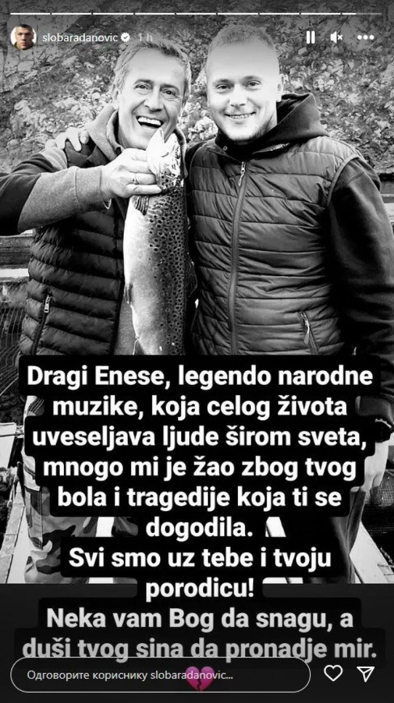 Dragi Enese, legendo narodne muzike, koja celog života uveseljava ljude širom sveta, mnogo mi je žao zbog tvog bola i tragedije koja ti se dogodila. Svi smo uz tebe i tvoju porodicu! Neka vam Bog da snagu, a duši tvog sina da pronađe mir - napisao je Sloba.