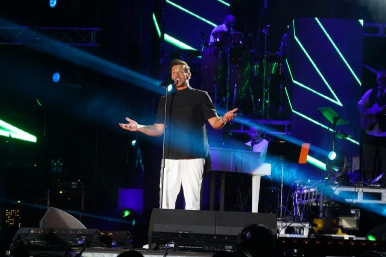 GRČKA MUZIČKA ZVEZDA Nikos Vertis izašao je na binu i zapevao neke od svojih najvećih hitova, a potom pozdravio publiku na srpskom jeziku.
