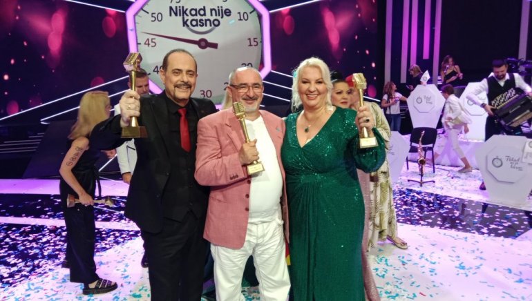SINOĆ je održano veliko i spektakularno finale muzičkog takmičenja "Nikad nije kasno", u kom je trijumfovalo troje veterana i to u tri kategorije, Fejsbuk (Pavle Vitanov), SMS glasovi (Sabina Kaltak) i pobednik stručnog žirija (Petar Spasojević).