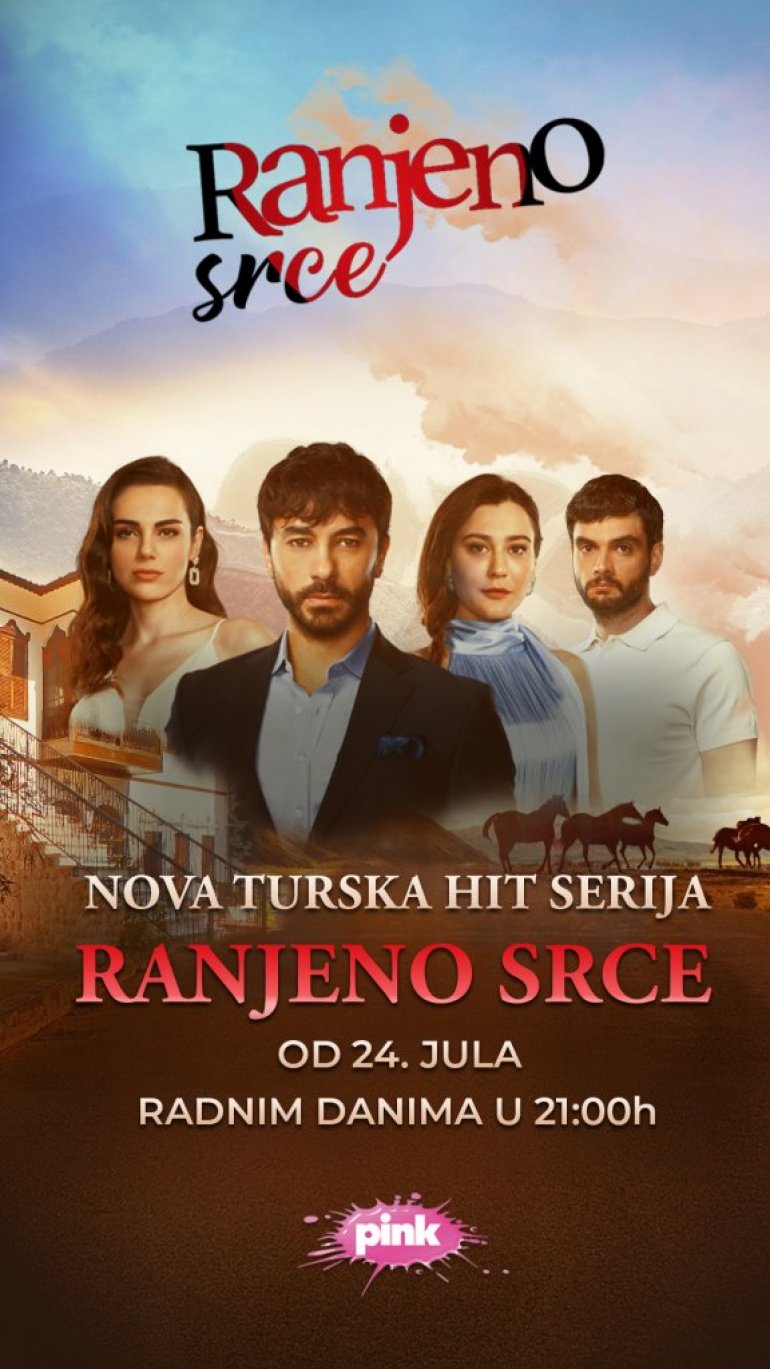 VISOKOBUDžETNA turska hit serija „Ranjeno srce“ u ponedeljak 24.07. u 21 sat stiže na Pink, i obećava priču koja će radnim danima oduševiti domaću publiku, kao što je oduševila publiku u Turskoj.
