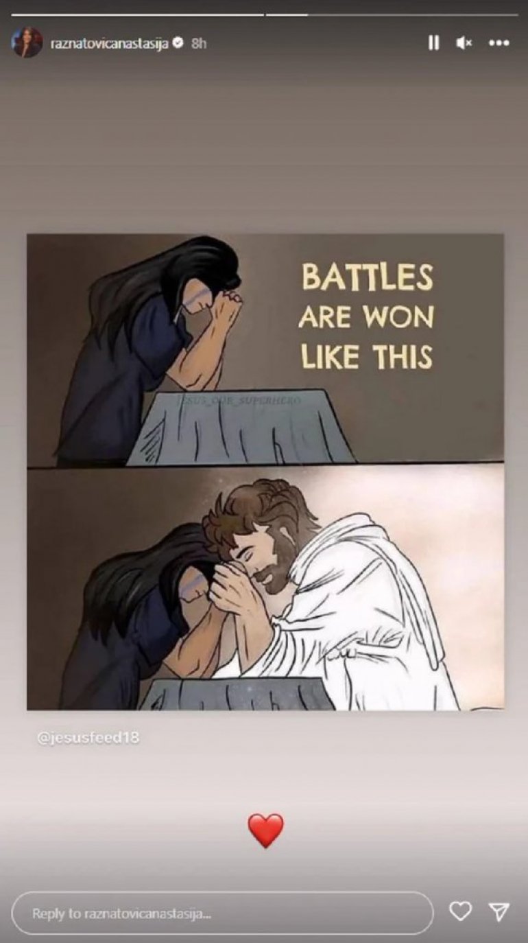 Anastasija je sada objavila sliku na kojoj se vidi devojka koja se moli u suzama, dok joj na drugoj slici Bog drži ruke koje je stegla.