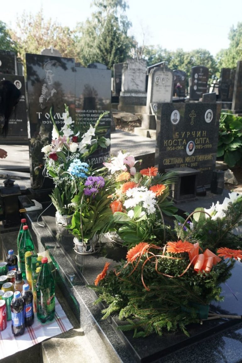 Na spomeniku su položeni buketi cveća, kao i posluženje za pokoj duše.