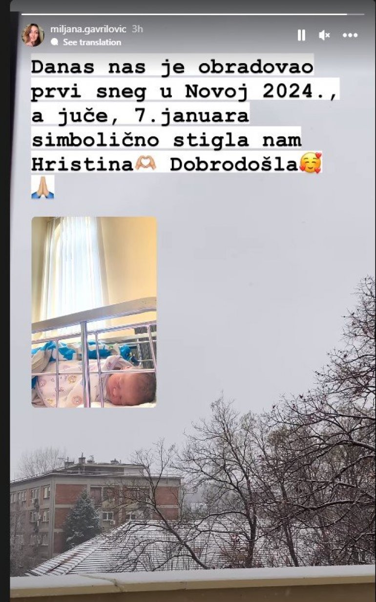 - Danas nas je obradovao prvi sneg u 2024. godini, a juče sedmog januara simbolično nam stigla Hristina - poručila je ponosna mama.