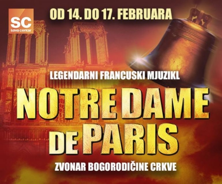Čuveni originalni mjuzikl “Notre Dame de Paris” po prvi put biće prikazan u Srbiji od 14. do 17. februara 2025, u Sava centar u Beogradu sa ukupno pet izvođenja (četiri izvođenja u 20.00, a izvođenje 15. februara nudi matine termin u 15.00).