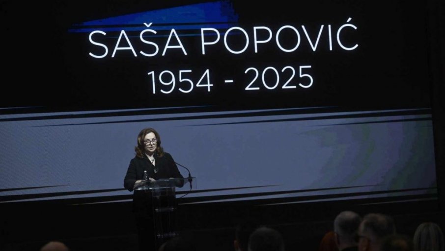 Komemoraciju je vodio Voja Nedeljković, a film sa arhivskim snimcima sa Popovićem o njegovom životu pušten je pre govora prijatelja i saradnika - i rasplakao Sava centar.