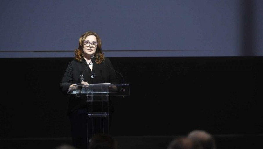 Prva je za govornicu stala Sašina dugogodišnja saradnica i prijateljica, pevačica Ana Bekuta. Emotivan govor završila je onako kako su i drugovali - pesmom.
