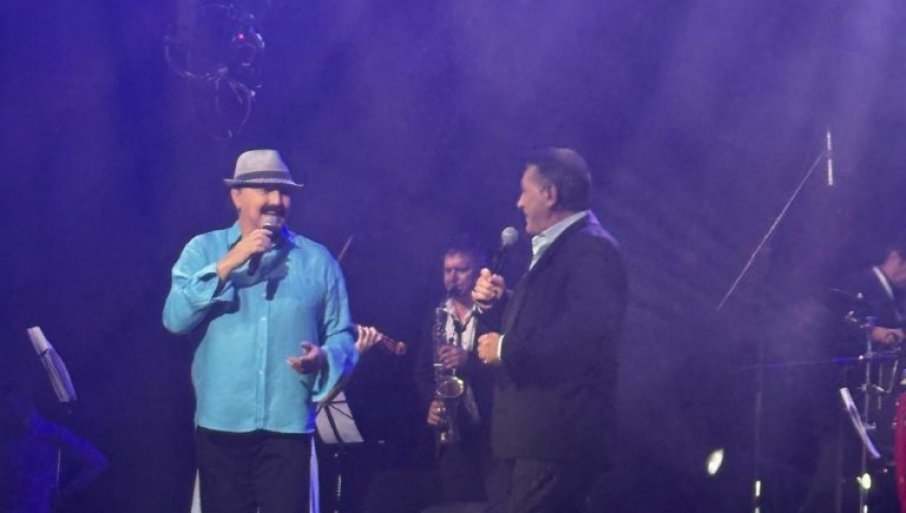 - Dame i gospodo, sada mi je čast da na scenu pozovem mog velikog prijatelja, čoveka čije pesme svi znamo napamet, Harisa Džinovića - rekao je Muslimović, dok su aplauzi odzvanjali dvoranom.