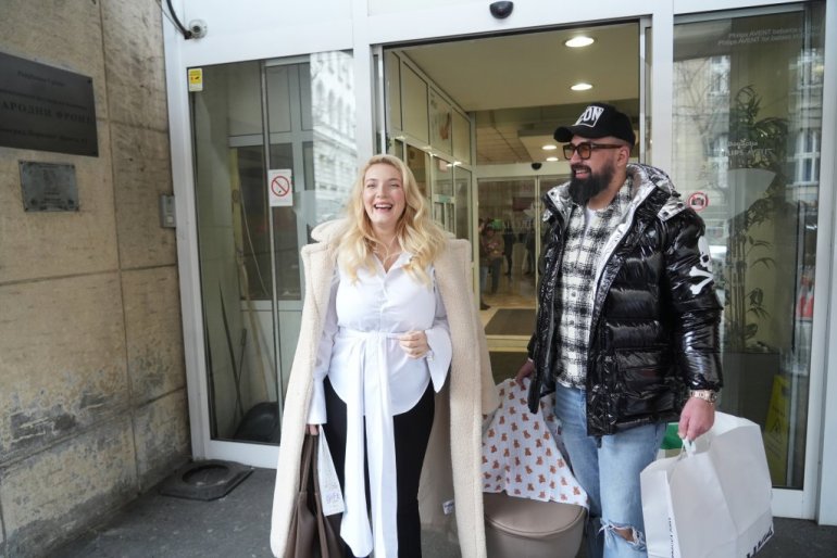 PEVAČICA Nikolina Kovač Kapor danas je izašla iz porodilišta GAK „Narodni front“ sa sinom Simeunom, a njih je sačekao ponosan tata Saša Kapor.