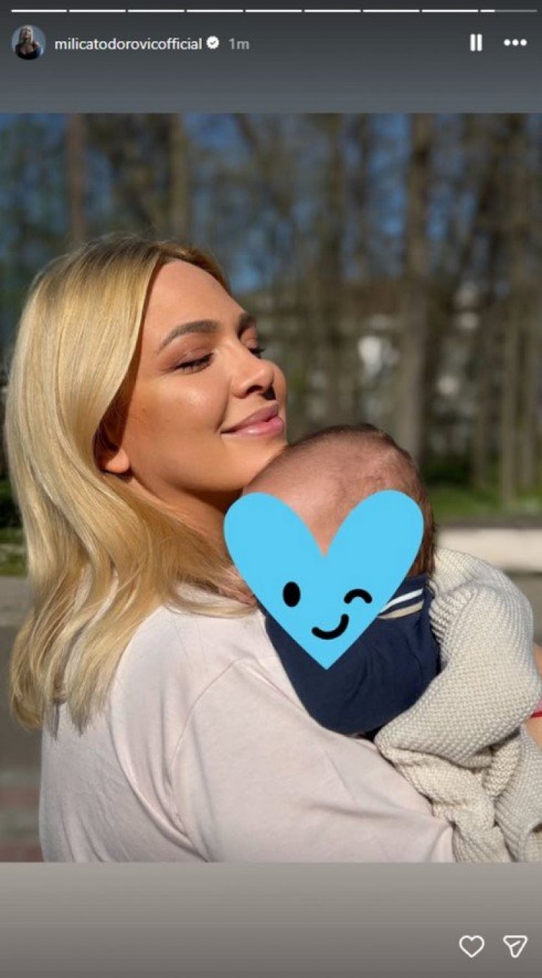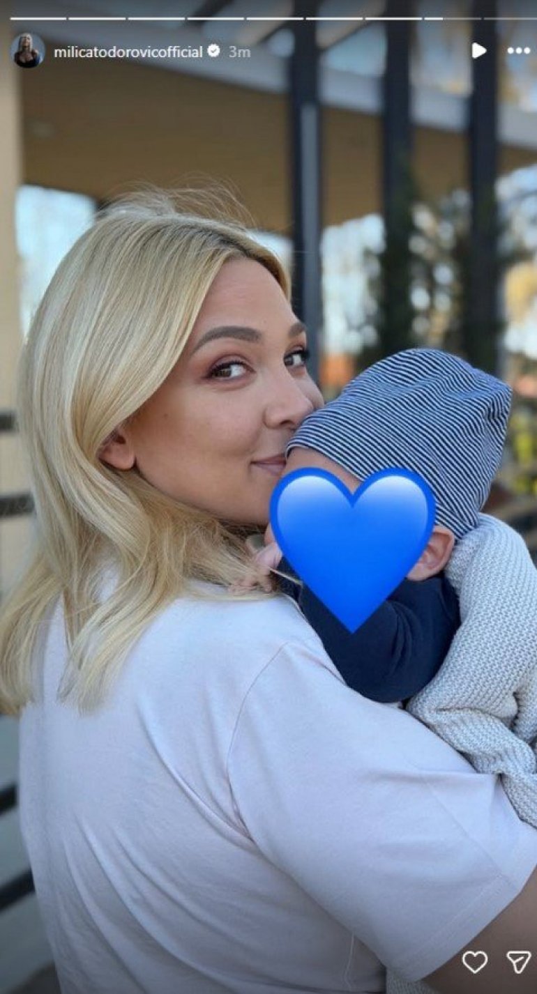 Slobodno vreme provodi u dvorištu porodične kuće, gde je zabeležen dirljiv trenutak, gde ponosna mama čvrsto grli svog prvenca, ne skidajući osmeh sa lica. Emocije su bile više nego očigledne, a Milica nije krila sreću zbog nove životne uloge.