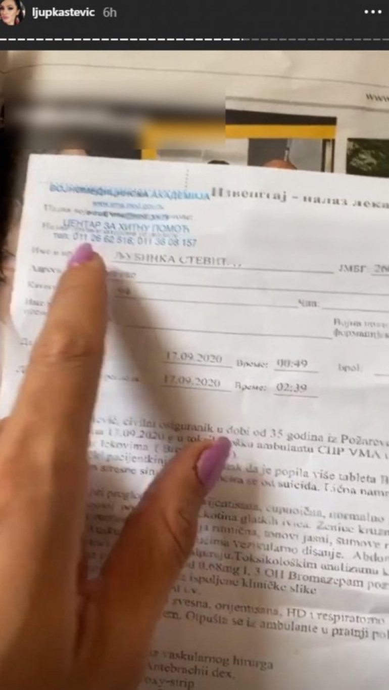 - Toksikološkim nalazom krvi pronađeno je prisustvo bromazepama u koncetraciji 0.68 m - pročitala je Ljupka na svom Instagram profilu i poručila da je pozitivna isključivo na ovaj lek.