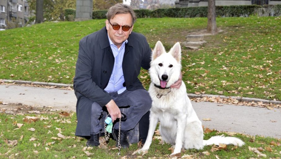 Popularni Tika iskoristio je prijatno jesenje jutro da prošeta svog ljubimca, prelepog belog psa. Uživali su u centru grada, u parku pored Narodne skupštine.