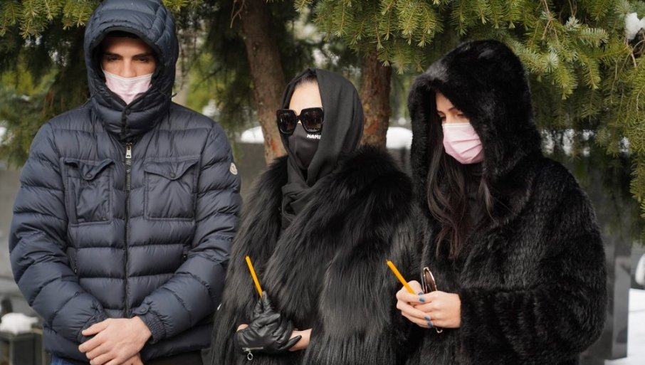 Ceca je došla u crnoj bundi, kao i njena ćerka Anastasija, a sve troje su nosili zaštitnu masku. Sveštenik je održao pomen.