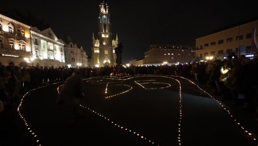 Na platou između Gradske kuće, u kojoj su u znak saučešća ugašena svetla, i spomenika Svetozaru Miletiću, poklonici Đoletovih rima su upaljenim svećama ispisali njegove inicijale smestivši ih u srce, takođe oivičeno plamičcima gorućeg voska.