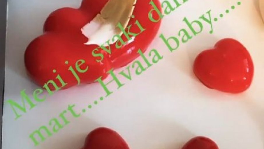 - Meni je svaki dan 8. mart, hvala bebo - napisala je folkerka, pored snimaka, na kojima se vidi da njen sto krase različite poslastice zanimljivog oblika, torta u obliku srca, ali i buketi cveća ukrašeni plišanim medvedićima, koje možete pogledati KLIKOM OVDE.