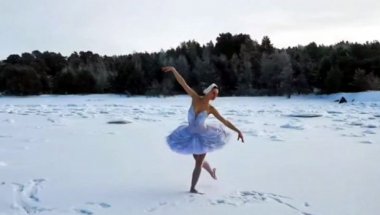 RUSKA balerina Ilmira Bagrautinova, iz svetski poznatog teatra Marinski u Sankt Peterburgu, otplesala je u kostimu deo iz baleta "Labudovo jezero" Petra Iljiča Čajkovskog, ali ne na sceni, već na zaleđenom Finskom zalivu, na temperaturi od minus 15 stepeni Celzijusovih.