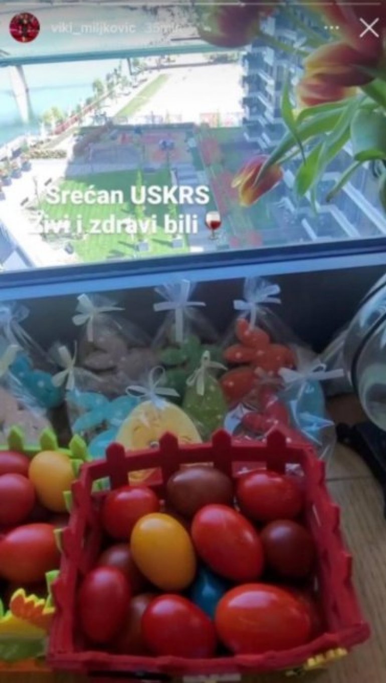 Naime, Viki je snimila ukrašena jaja u šarenim korpicama i medenjake u obliku zečeva, a uz to je pokazala i pogled koji ima sa terase iz luksuznog stana.