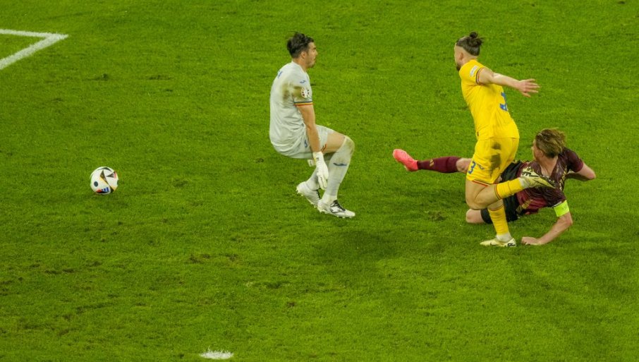85' - Još jedna dobra šansa za Rumuniju. Prebacio je Alibek golmana Belgije, ali je Kastanj stigao loptu i sprečio je da pređe liniju.
