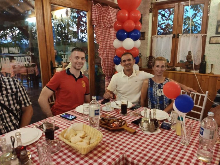 Da to ne bude u radnom ambijentu, jer strunjača je ovih slavskih dana, potpuno u drugom planu, pobrinuli su se predsednik Rvačkog saveza Srbije, takođe Zrenjaninac i nekada uspešan rvač, Željko Trajković, predsednik zrenjaninskog Proletera Marko Stanojčić, ali i ostali rvači iz kluba i doček bronzanom heroju, organizovali u autentičnom banatskom salašu Kod stare dunje, nadomak Zrenjanina.