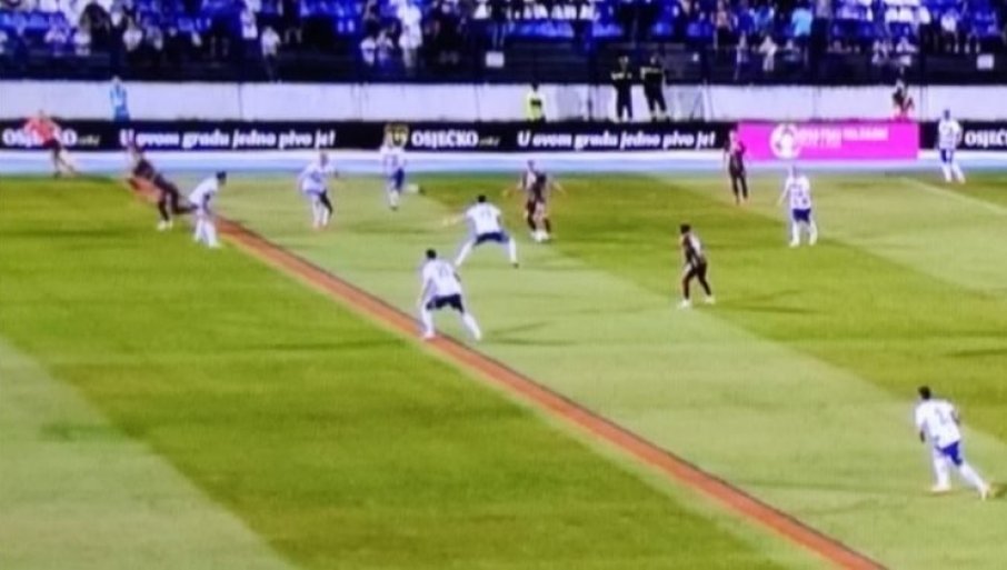 Prikazana linija na fotografiji zaista i predstavlja igrača odbrane Osijek, ali ne poslednjeg, već pretposlednjeg.