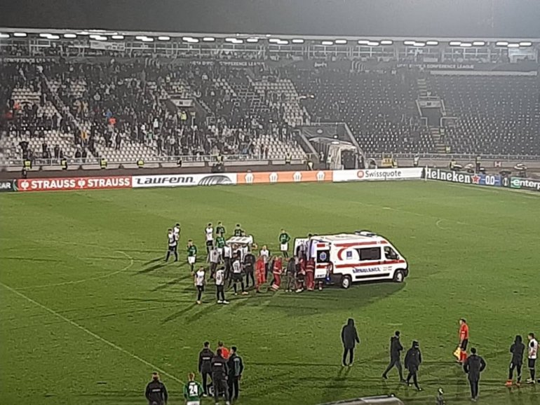 Štoper gostiju Sepik u 70. minutu iznet je sa terena vozilom Hitne pomoći nakon što se požalio na bolove u grudima i nagon na povraćanje.