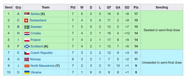 U slučaju da bude drugoplasirana u grupi, Srbija će biti domaćin baraža, gotovo je sigurno da ćemo biti među tri najbolje drugoplasirane nacije.