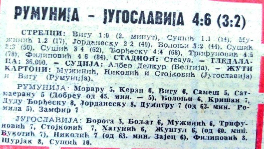 Tako je, opčinjena neverovatnim mečom u Bukureštu, pisala jugoslovenska štampa sredinom novembra 1977. Vreme koje je prošlo, a minule su 44 godine, dalo je za pravo eminentnim perima "Novosti", "Sporta", "Politike", "Sportskih novosti"...Bilo je, naravno, još dramatičnih, bitnih, presudnih, velikih i prijateljskih, ali takav vatromet nikada nije viđen: reprezentacija Jugoslavije savladala je 13. novembra 1977, na stadionu "23. avgust" u Bukureštu selekciju Rumunije sa 6:4!